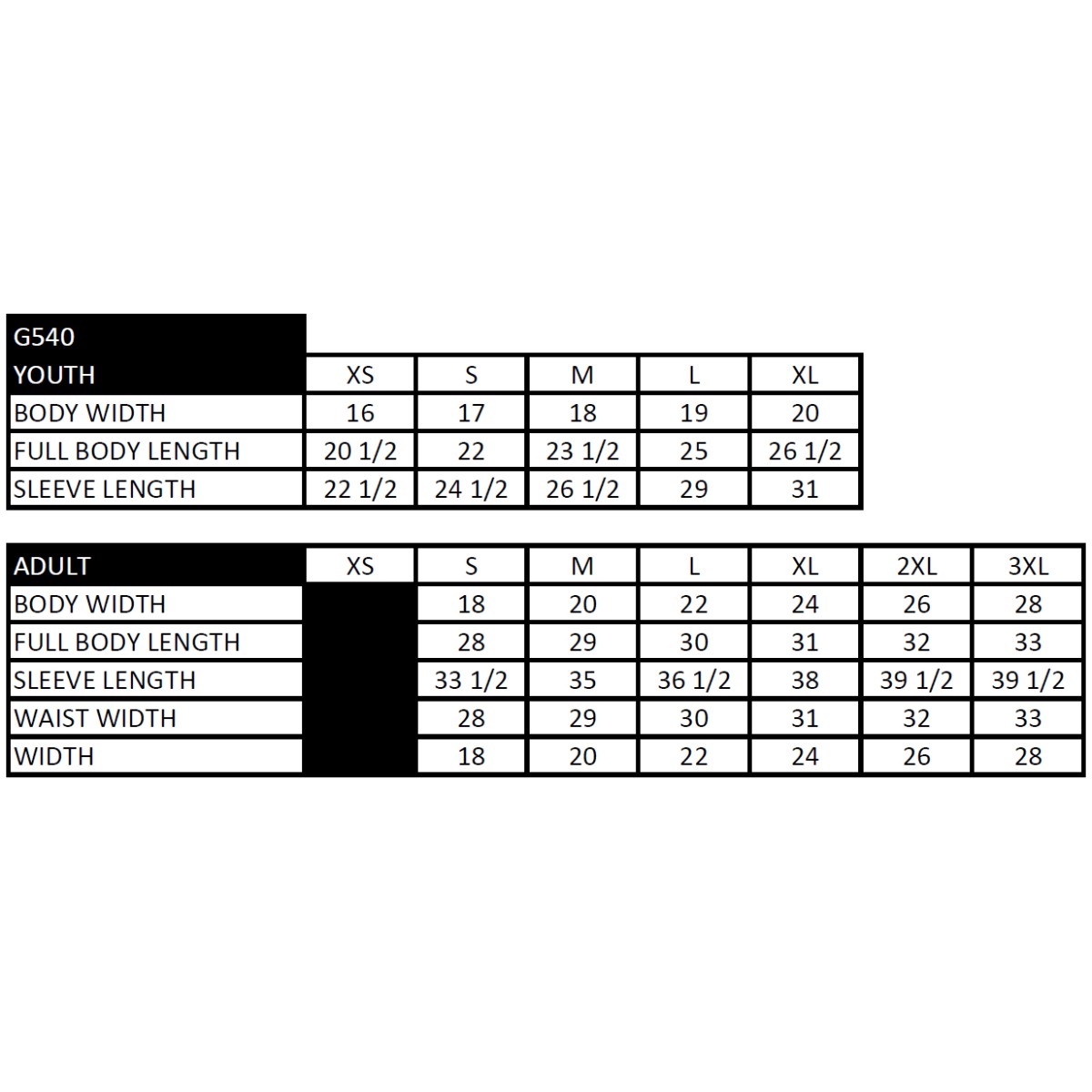 Click to view sizing chart.
